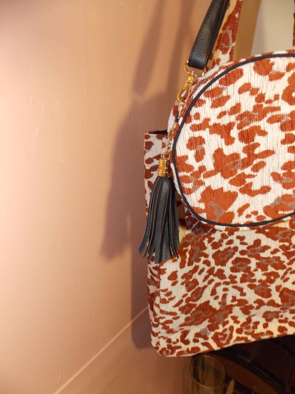 Deze speciaal geweven stof heeft ook stukken luipaard print met een waanzinnige metallic glans, LOVE IT!
