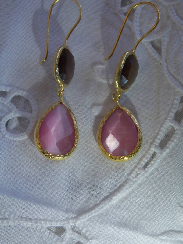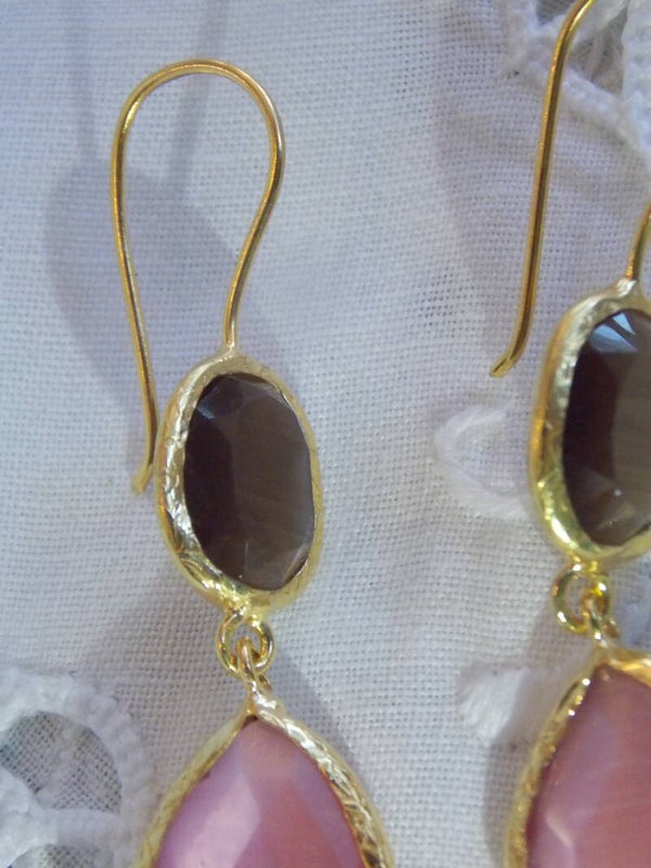 Deze gave oorbellen met 2 verschillende stenen, soft pink and black zijn echte eyecather of beter gezegd ear candy :)