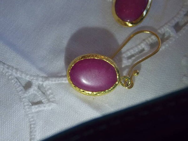 Deze gave oorbellen met Rasberry pink gemstone zijn echte eyecather of beter gezegd ear candy :)